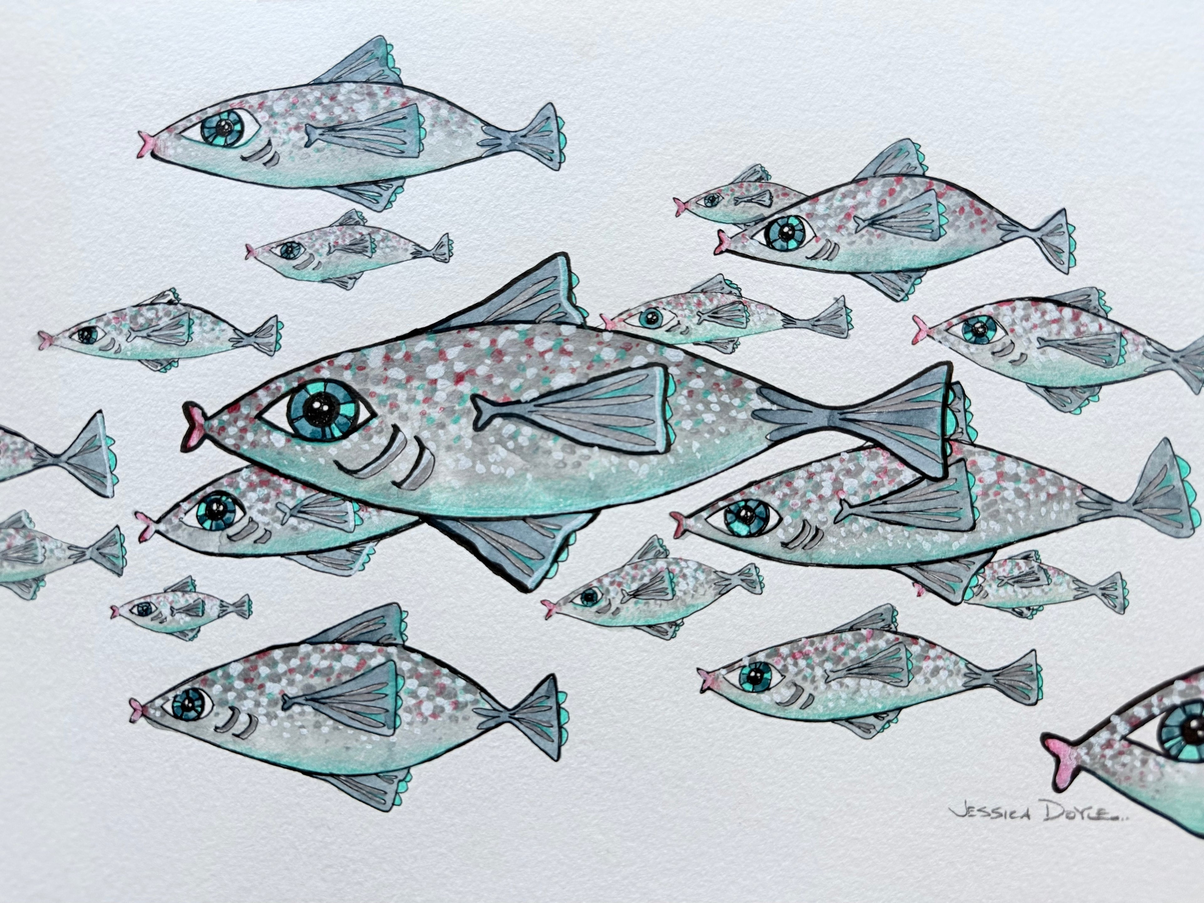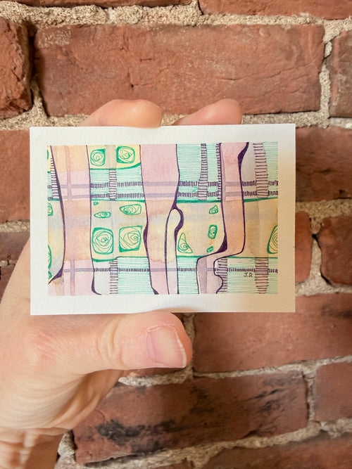Miniature original artworks - ink and watercolor on paper